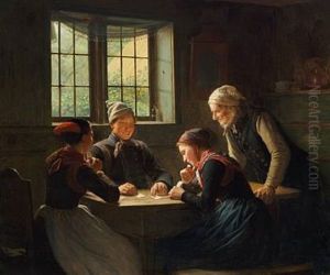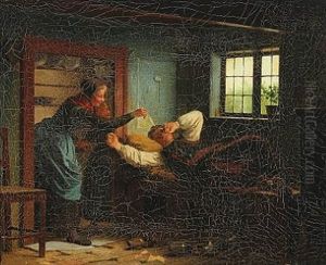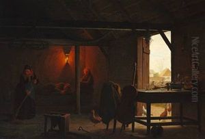 Peasant Interior With A Young Woman At The Spinning Wheel, Zealand