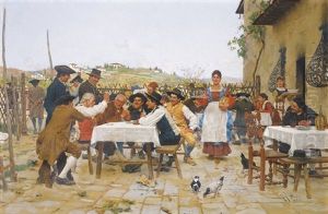 Interior With Persons Playing Black Man