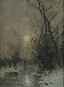 Abendliche Winterlandschaft. Signiert Unten Rechts: J. Jungblut. Ol Auf Leinwand. H 34; B 47 Cm.