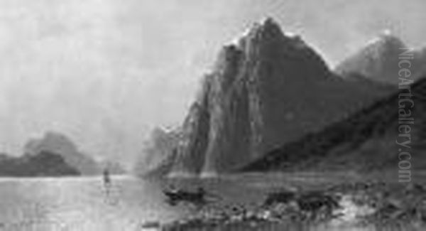 J. "blick Auf Einen Norwegischen Fjord". Bez. Ol Auf Lwd. 52 X 91,5 Cm. Rahmen