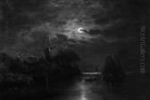 "nachliche Uferlandschaft Mit Windmuhle". Sign. J. Sander . Ol Auf Lwd. 55 X 82 Cm. Rahmen. Abbildung Seite