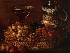 Bring the timeless beauty of Johann Martin Metz's Stillleben Mit Auf Tisch Arrangierter Vase, Daneben Nest Mit Eiern Und Vogel Auf Melonenstuck, Vor Dem Tisch Weinreben into your home with a handmade oil painting reproduction. Carefully recreated on canvas by skilled artists using traditional techniques, this piece captures the delicate brushwork, subtle light, and vibrant color of the original masterpiece. With museum-level quality and rich texture, it brings elegance and artistic depth to any space. Enjoy free shipping and make this masterpiece a part of your personal collection.