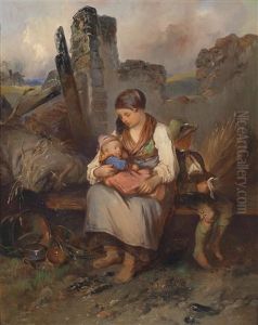 Die Von Einem Hund Bewachte Mittagsrast Zweier Kinder Auf Dem Feld