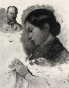 Portrait Eines Madchens Im Profil Mit Rotem Tuch