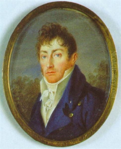 Bildnis Eines Blonden Herrn In Pflaumenblauem Jackett Vor Landschaftshintergrund