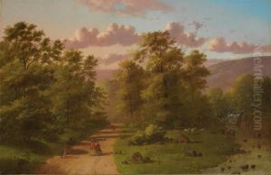 A Winter Landscape With Figures By A Farmstead