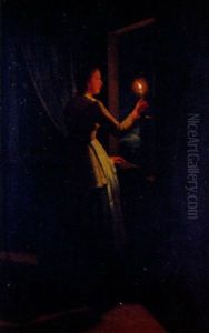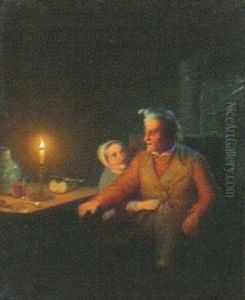 Interior With Figures At A Table By Candlelight