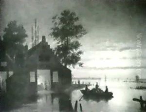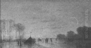 Nighttime Winter Landscape With Skaters And A Koek En Zopie