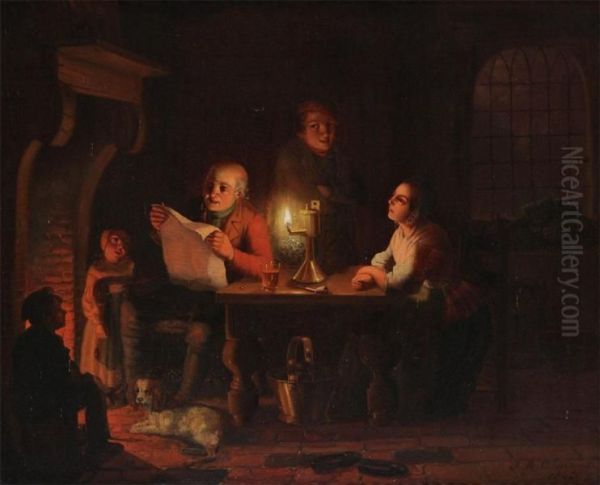 Interior With Figures At A Table By Candlelight