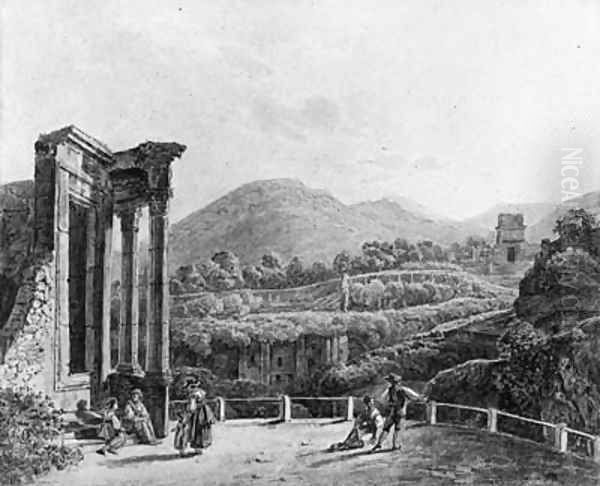 The Temple of the Sybills at Tivoli with Figures overlooking the Ruins of the Villa Gregoriana