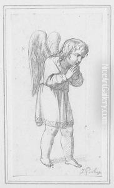 Betender Engel. Bleistiftzeichnung Auf Butten. 16,3 X 9,1 Cm. Anfang 19. Jh. Signiert.