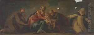 The Trinity adored by the Madonna, Saints Francis and Ignatius of Loyola and other Saints