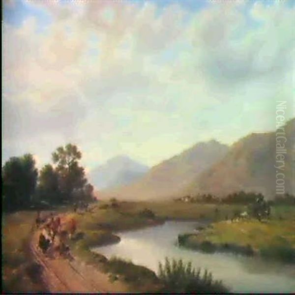 Flusslandschaft Mit Staffage- Figuren