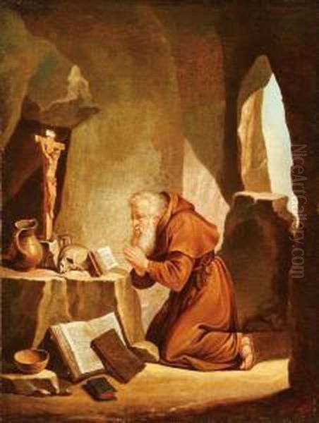 Bring the timeless beauty of Johann Ullrich Stahelin's A Hermit Monk At Prayer Before A Crucifix Within A Cave into your home with a handmade oil painting reproduction. Carefully recreated on canvas by skilled artists using traditional techniques, this piece captures the delicate brushwork, subtle light, and vibrant color of the original masterpiece. With museum-level quality and rich texture, it brings elegance and artistic depth to any space. Enjoy free shipping and make this masterpiece a part of your personal collection.