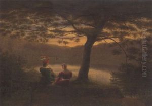 Ein Troubadour Und Seine Dame An Einem See Sitzend
