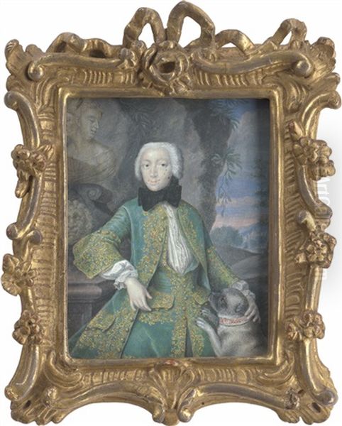 Anna Sophia Christina, Grafin Von Erbach (1708 - 1759), In Grunem Jagdkostum, Mit Mops
