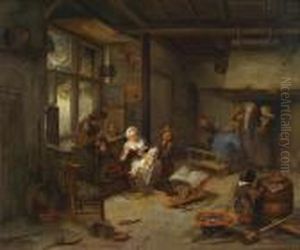 A River Side Village With Anglers On A Bench, And Peasants By A Wattermill