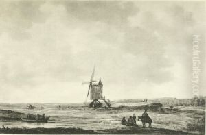 Travellers On A Track Before A Canal, A Mansion And Windmill Beyond