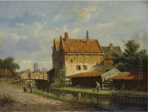 A View Of A Canal In A Sunlit Dutch Town