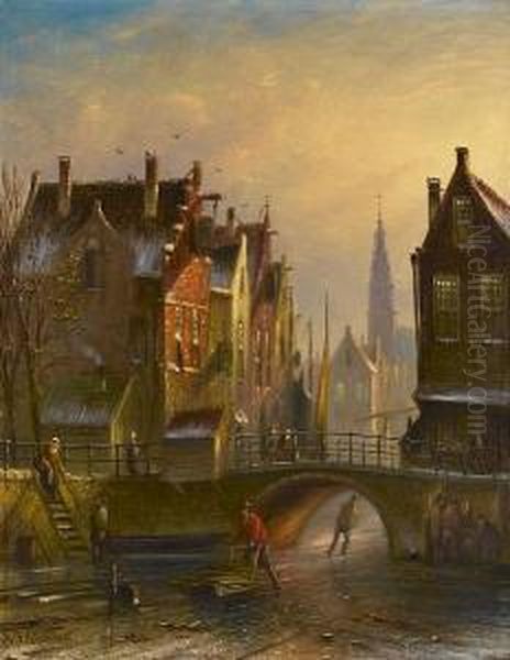 Skaters On A Canal In Amsterdam With A View Of The Zuiderkerk Beyond