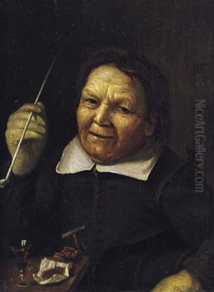 Bildnis Einer Alten Frau Mit Einer Pfeife Vor Einem Gefullten Weinglas