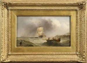 A Dutch Two-master On Choppy Waves Near A Jetty