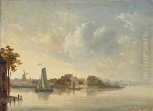 Dutch Canal Scene Oil Painting by Johannes Frederik Hulk, Snr.