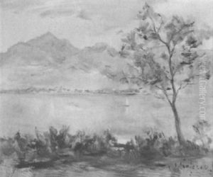 Wasserlandschaft Mit Segelboot Vor Bergen (bodensee?)