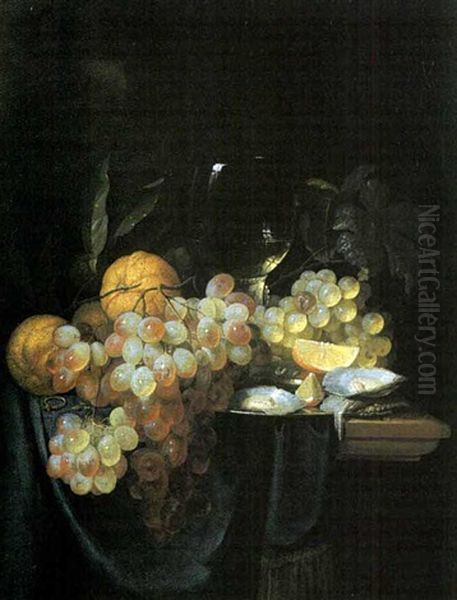 Nature Morte Aux Grappes De Raisin, Citron Et Huitres Sur Un Entablement