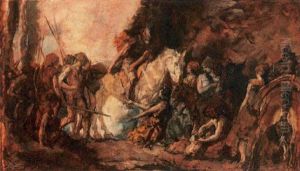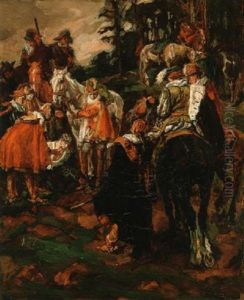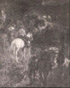 Horsemen Leading Captives Through A Forest