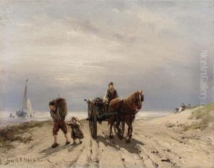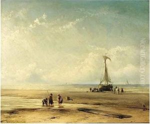 A Coastal Scene With A Shell Fisher, Fishmongers And A Bomschuit In The Surf
