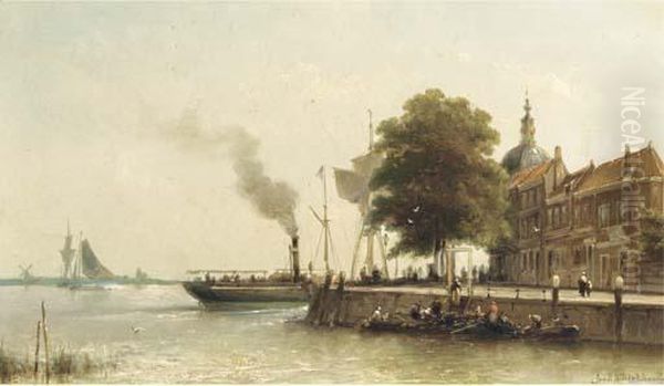 Aan De Kade: A Steamship Passing The Groot Hoofd, Dordrecht