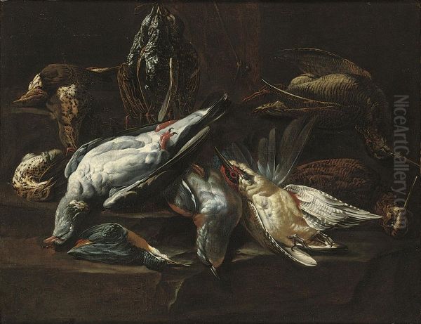A Dead Kingfisher, Woodcocks And Other Game On A Draped Table