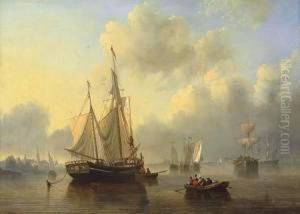 Gesigt Op Amsterdam: Sailing-freights On The Ij, With Thewestertoren In The Distance, Amsterdam
