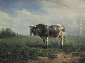 A Bull And Calves In A Summer Landscape