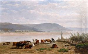 Kuhe Auf Der Weide Vor Einem Seeufer (+ Schafe Vor Dem Gatter; Pair)