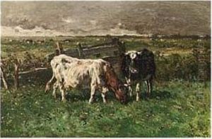 Cows At Pasture Oil Painting by Johannes-Hubertus-Leonardus de Haas