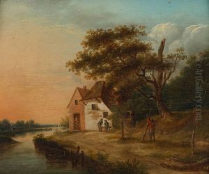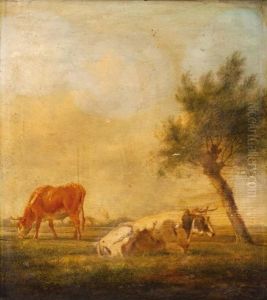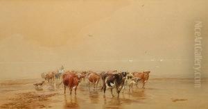Mountainous Landscape With Drovers, Cattle And Sheep Upon A Track Before A Watering Pool