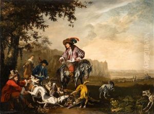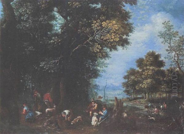 Waldlandschaft Mit Rastender Jagdgesellschaft