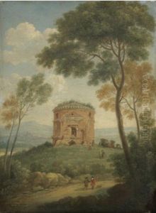 Italianate Landscape With Figures By An Obelisk And Tomb