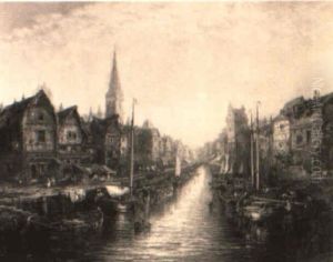 A Ship Moored Near A Dutch Town