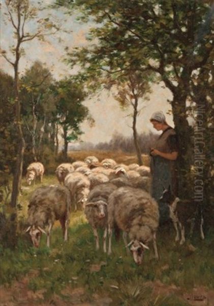 Shepherdess With Flock