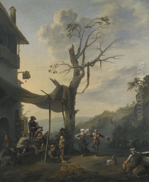 Peasants Dancing The Tarantella Outside An Inn In A Hilly Italianate Landscape