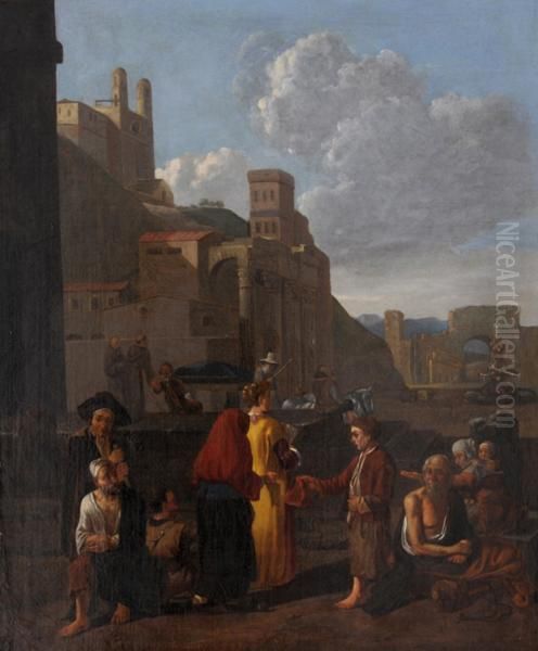 Veduta Fantasiosa Di Roma Con Figure Sullo Sfondo Di Trinita Dei Monti E Della Fontana Del Tritone