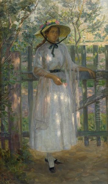Die Tochter Des Malers Vor Dem Gartentor Im Sommer