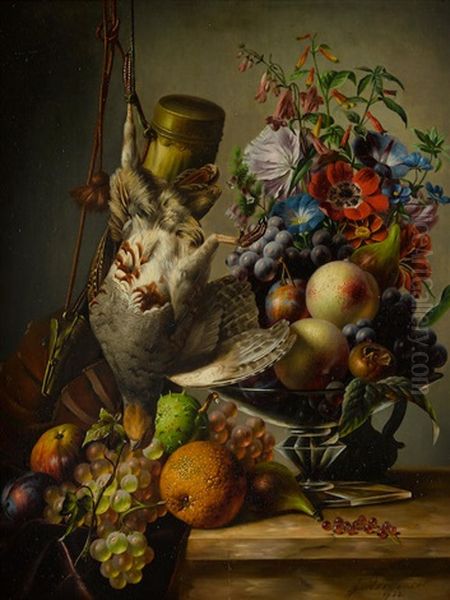 A Still Life With Game And Fruit On A Ledge