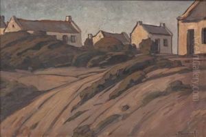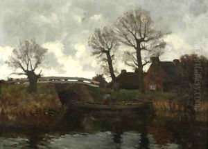 Bauernkaten Unter Baumen An Einem Flubchen.