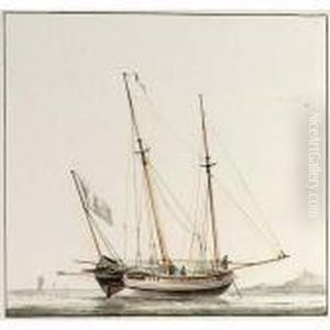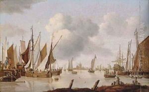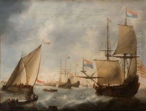 Shipping On The Lj Off Amsterdam With A Bezan Yacht, A Dutch Man-o'-war, A Wherry And Other Shipping