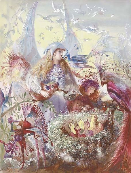 Bring the timeless beauty of John Anster Fitzgerald's Fairies and a bird's nest into your home with a handmade oil painting reproduction. Carefully recreated on canvas by skilled artists using traditional techniques, this piece captures the delicate brushwork, subtle light, and vibrant color of the original masterpiece. With museum-level quality and rich texture, it brings elegance and artistic depth to any space. Enjoy free shipping and make this masterpiece a part of your personal collection.