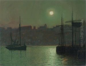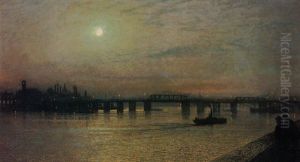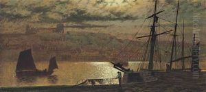 Bolton Abbey By Moonlight; A Wooded Landscape With A Woman Walking On A Path In The Moonlight